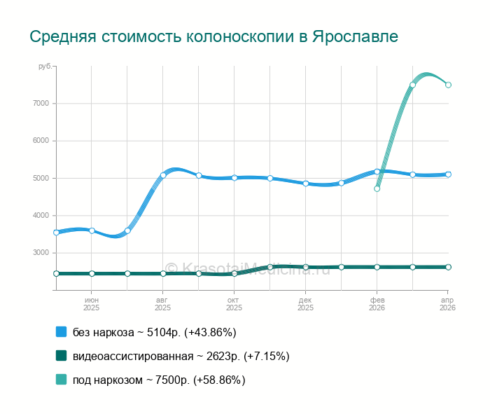 - Колоноскопия (без наркоза) ~ 5 232р.40 цен